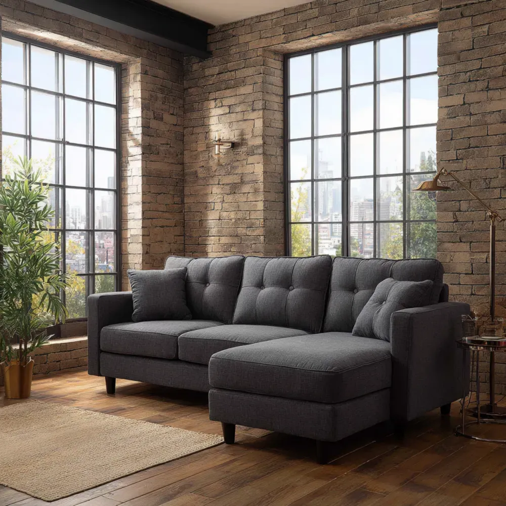 この現代デザインのコーナーソファは、お部屋にスタイリッシュで居心地の良い空間を提供します。